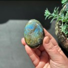 Flashy liten Labradoritt håndstein. Denne er 4,7x3,2x1,5cm og veier ca 36g. Naturlige merker forekommer! Det er denne krystallen du ser på bildene du får hvis du bestiller denne.