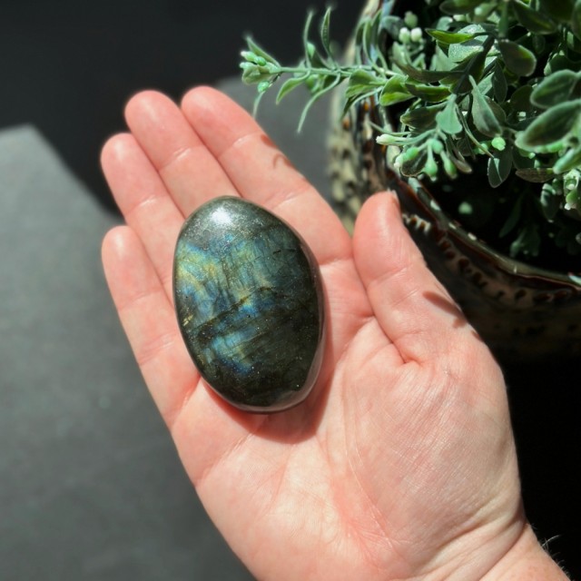 Labradoritt bærer lyset av stjernestøv og drømmer. En magisk beskyttelsesstein som åpner for intuisjon, transformasjon og kontakt med din indre visdom. Denne er 4,9x3,2x1,9cm og veier 48g. Det er den krystallen på bildene du får ved bestilling.
