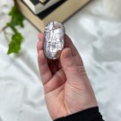 Orbikulær Sjø Jaspis bærer havets rytme i seg - en krystall for ro, balanse og emosjonell healing. De vakre sirklene minner oss om livets sykluser og vår indre styrke. Denne veier ca 934g og har målene 12,4x9,1x5,1cm. Naturlige merker forekommer.