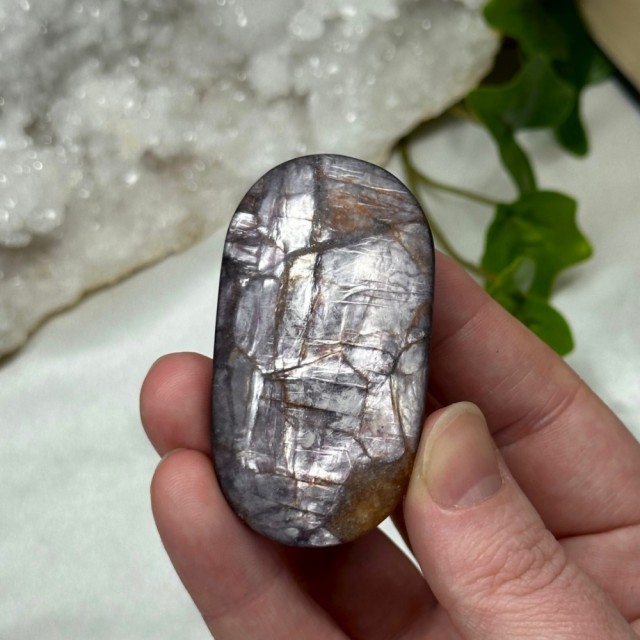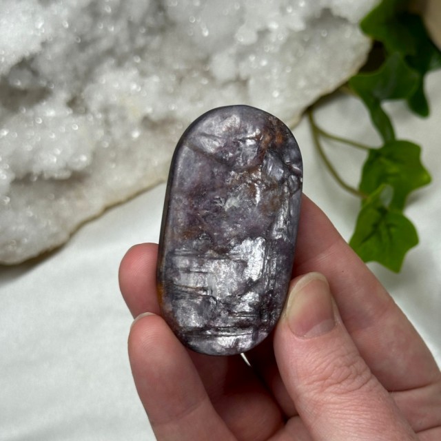 Nydelig skinnende Lepidolitt/Purple Mica hjerte. Dette nydelige hjertet har målene 5,5x5x1,4cm. Vekt: 53,3g. Det er den krystallen du ser på bildene du får hvis du bestiller denne.