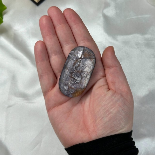 Stor Labradoritt Pynteskive m/stativ 25,5cm