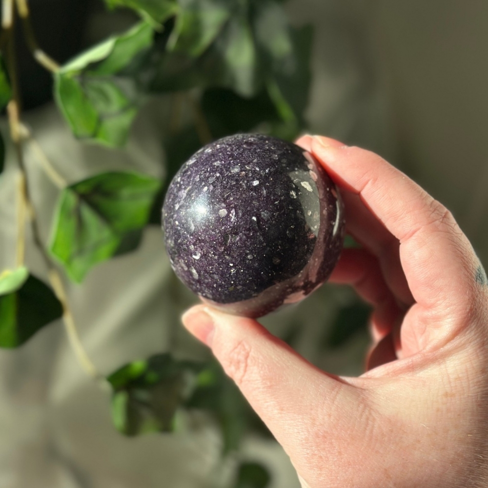 Nydelig skinnende Lepidolitt/Purple Mica hjerte. Dette nydelige hjertet har målene 5,1x5,9x1,8cm. Vekt: 73,9g. Det er den krystallen du ser på bildene du får hvis du bestiller denne.