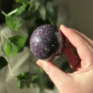 Nydelig skinnende Lepidolitt/Purple Mica hjerte. Dette nydelige hjertet har målene 5,1x4,1x1,4cm. Vekt: 43,87g. Det er den krystallen du ser på bildene du får hvis du bestiller denne.