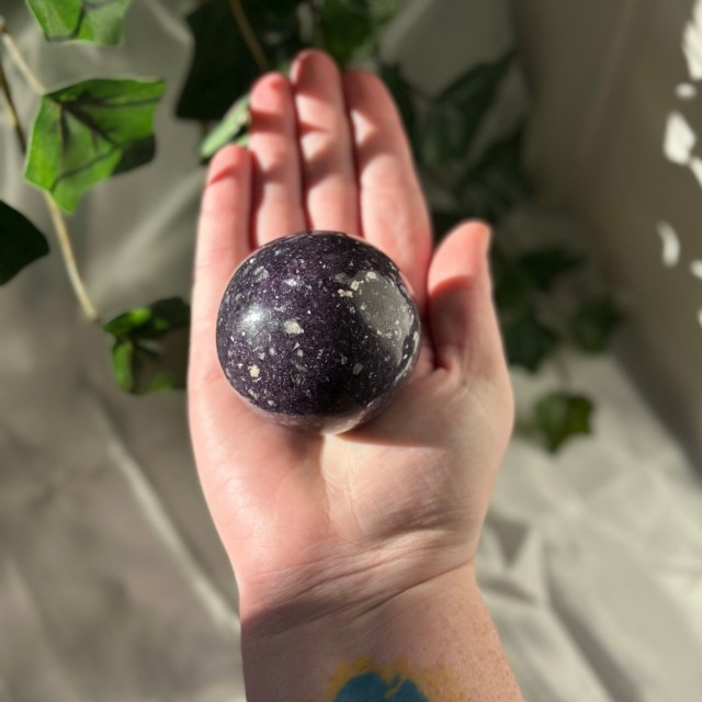 Orbikulær Sjø Jaspis bærer havets rytme i seg - en krystall for ro, balanse og emosjonell healing. De vakre sirklene minner oss om livets sykluser og vår indre styrke. Denne veier ca 934g og har målene 12,4x9,1x5,1cm. Naturlige merker forekommer.