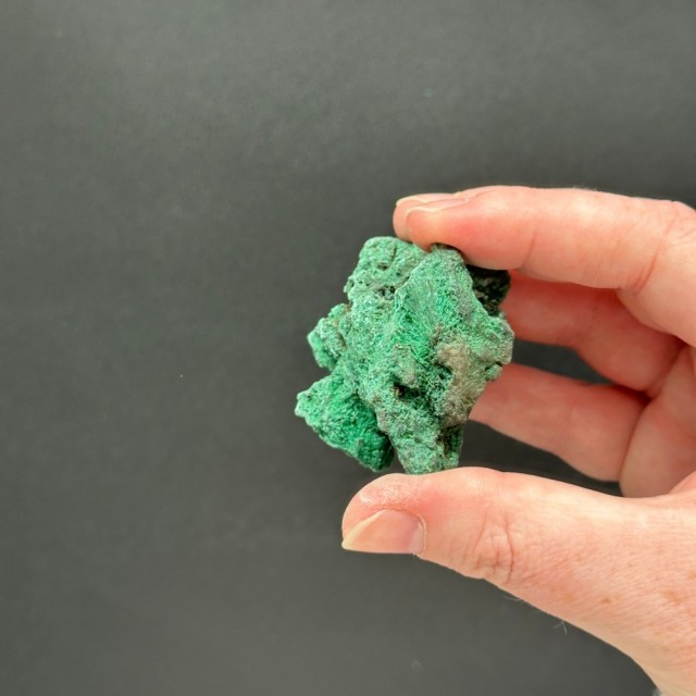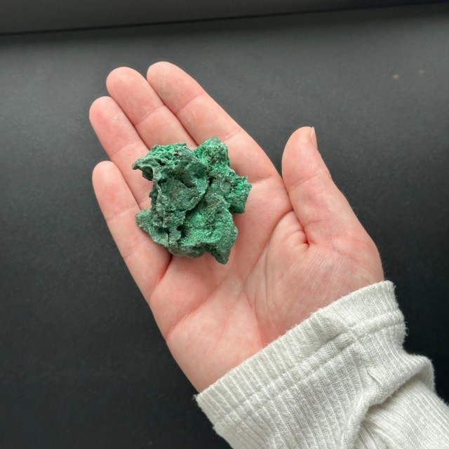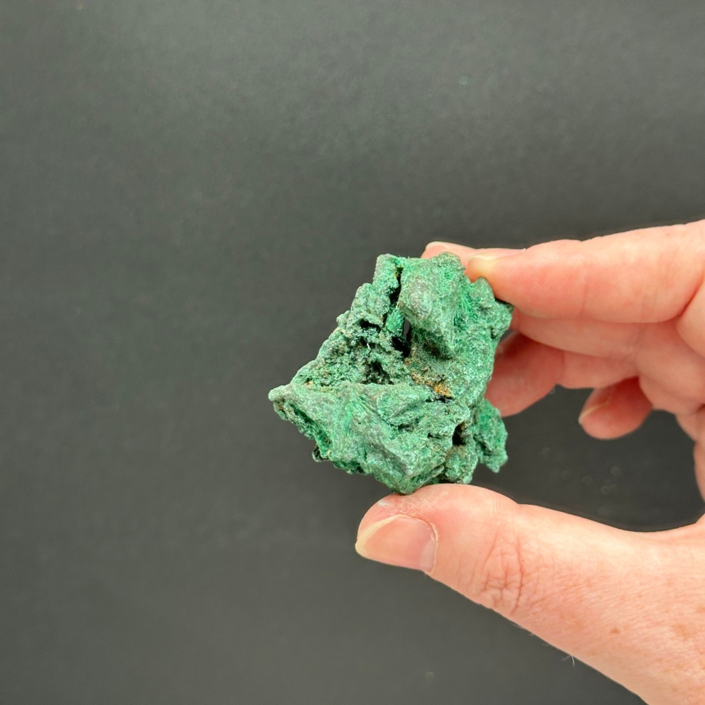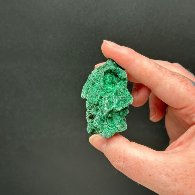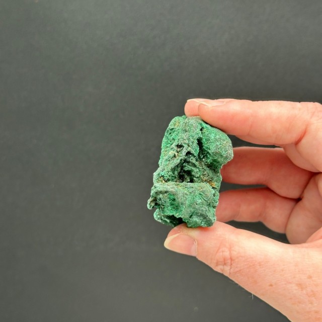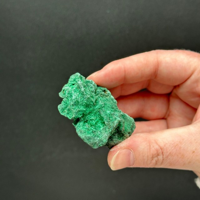 Nydelig grønn fibrøs Malakitt råbit. Denne du ser her veier ca 74 gram og er 5,6cm lang. Det er den du ser på bildene du får hvis du bestiller denne. Bildene er tatt i dagslys.