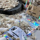 Krystallchips pakkene kommer i 30g - 50g poser.