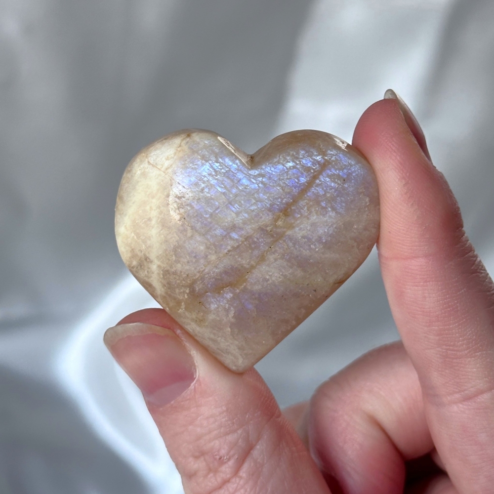 Regnbue Månestein (også kjent som hvit labradoritt) er en favoritt blant samlere – elsket for sitt blå glimt, iriserende skinn og sterke tilknytning til månesykluser og indre visdom. Disse er ca 2-3cm. Alle har flash-garanti, tilfeldig hvor mye.