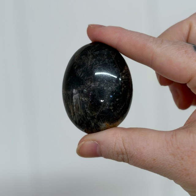 Mystisk og vakker, Svart Månestein er en vokter i mørket. Den beskytter, balanserer og guider deg gjennom livets sykluser - en krystall som minner deg om at hvert mørke rom gir plass til nytt lys. Denne er 5,2x4x2,6cm og veier ca 80g.