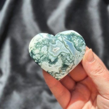 Mose Agat hjerte på 130g og har målene 5,5x6,5x2,6cm. Denne er litt redusert i pris pga litt skeiv utskjæring på hjertet. Det er den på bildet/bildene du får hvis du bestiller denne.
