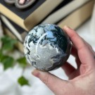Nydelig grå Agat måne, dette har pittelitt drusy på seg samt litt dendritt (små prikkene). Dette er 5,4x3,9x1,2cm og veier ca 40g. Det er den krystallen på bildene du får hvis du bestiller denne. PS: Små naturlige merker forekommer på disse Agatene.