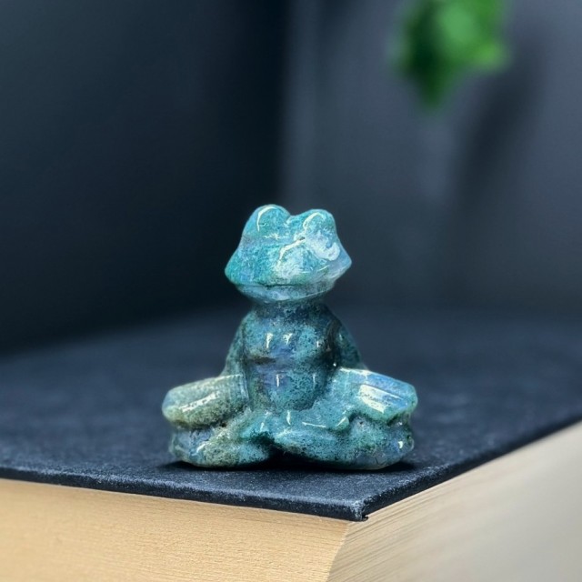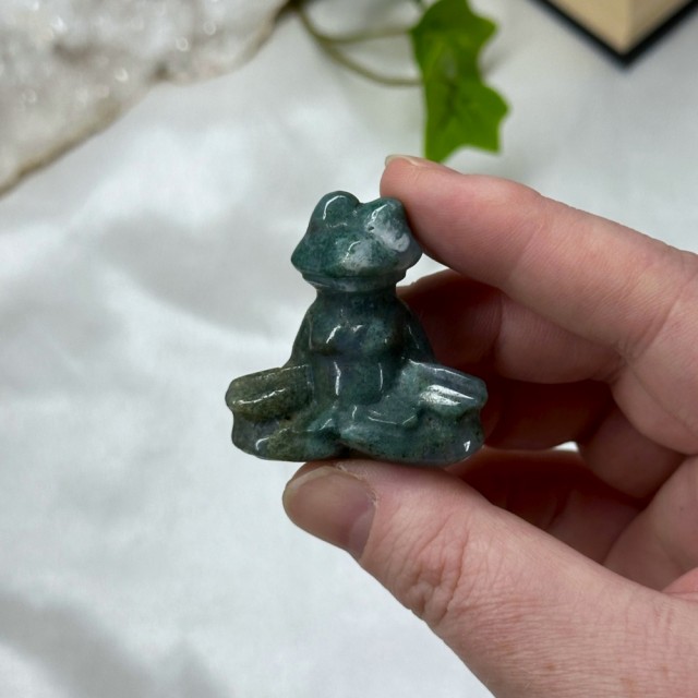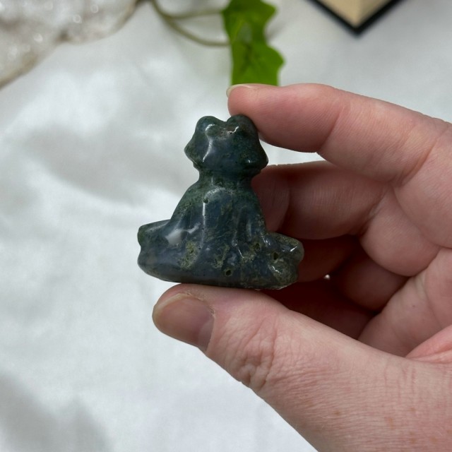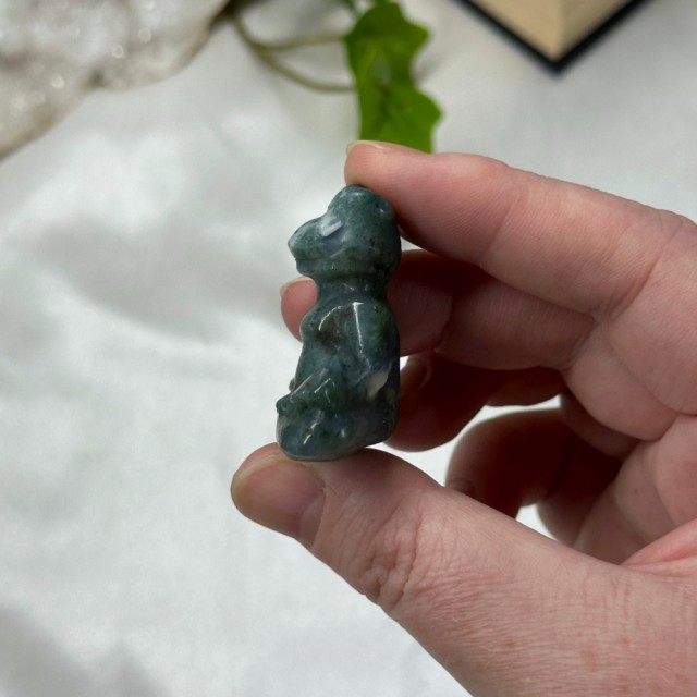 Kjempe søt krystall mini figur utskjæret som en Dinosaur i Mose Agat! Disse er så fine og ha i samlingen sin! Prisen er per stk.