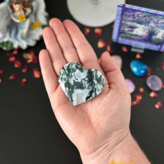 Som en levende bit av Moder Jord forbinder Mose Agat deg til naturens rytmer. Den sprer velstand, ro og harmoni - rett og slett som en skogstur i krystallform. Denne er 545g og 7,3cm. Det er den krystallen du ser på bildene du får hvis du bestiller denne.