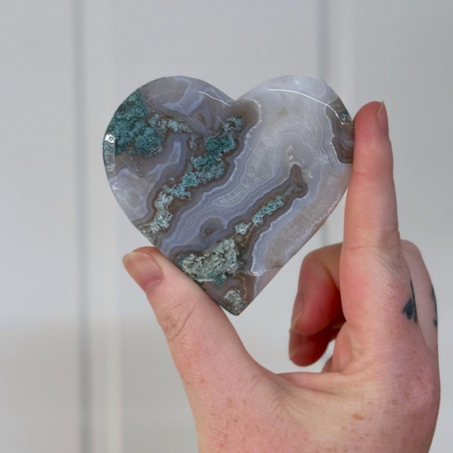 Mose Agat åpner hjertechakraet, og hjelper kjærlighet og overflod til å flyte fritt. Den oppmuntrer til å pleie vennskap, bygge nye relasjoner og finne fred i de du allerede har. Mange opplever også at Mose Agat fremmer kreativitet og selvutvikling - som en påminnelse om at vekst alltid er mulig, uansett hvor man er i livet.