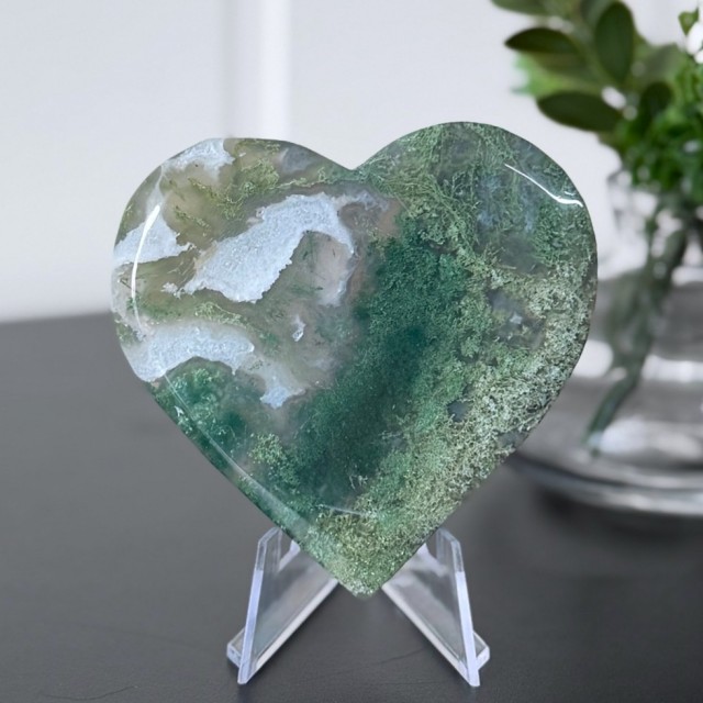 Mose Agat åpner hjertechakraet, og hjelper kjærlighet og overflod til å flyte fritt. Den oppmuntrer til å pleie vennskap, bygge nye relasjoner og finne fred i de du allerede har. Mange opplever også at Mose Agat fremmer kreativitet og selvutvikling - som en påminnelse om at vekst alltid er mulig, uansett hvor man er i livet.