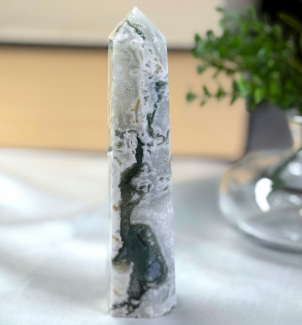 Mose Agat er en krystall som føles som naturens egen stemme.. rolig, helbredende og alltid til stede. Den har lenge vært sett på som en lykkebringer og en vokter av naturens krefter. Mange tror den fremmer vekst og velstand, ikke bare for mennesker, men også for planter. Legger du Mose Agat i nærheten av blomster, sies det at de spirer og blomstrer enda rikere.