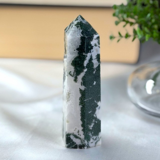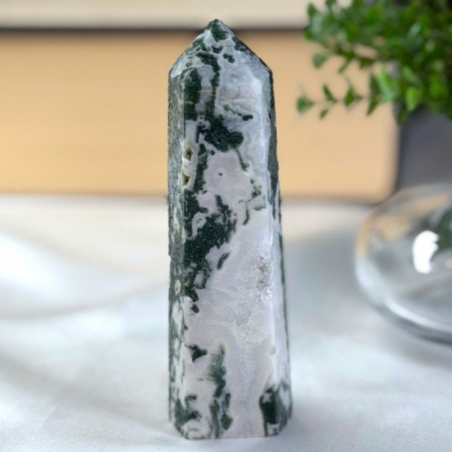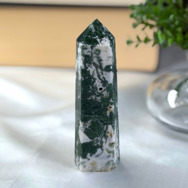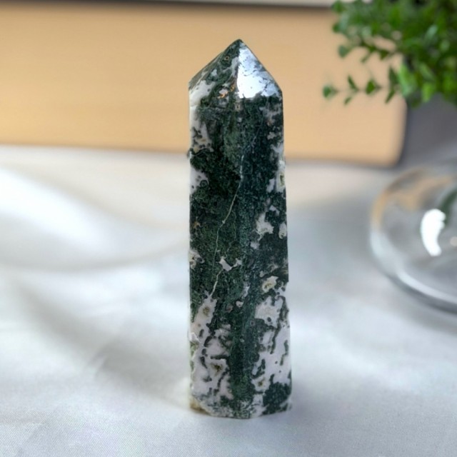 Mose Agat er en krystall som føles som naturens egen stemme.. rolig, helbredende og alltid til stede. Den har lenge vært sett på som en lykkebringer og en vokter av naturens krefter. Mange tror den fremmer vekst og velstand, ikke bare for mennesker, men også for planter. Legger du Mose Agat i nærheten av blomster, sies det at de spirer og blomstrer enda rikere.