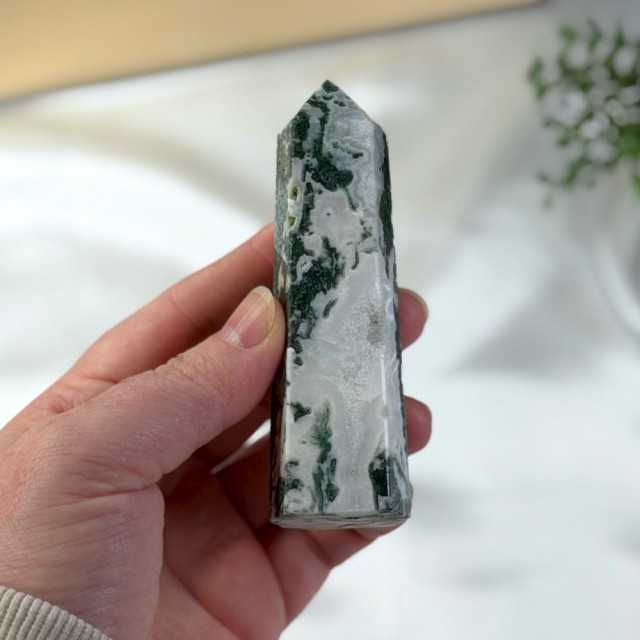 Å holde en Mose Agat er som å holde et levende stykke Moder Jord - en krystall som både beskytter, inspirerer og helbreder, mens den minner deg på at du alltid er en del av noe større.