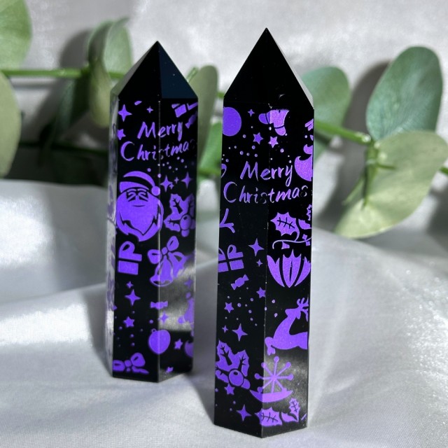 Her har du et nydelig juledekorert tårn i Obsidian. Disse er ca 9-9,5cm høye. Prisen er per stk. -Små merker på trykket forekommer.