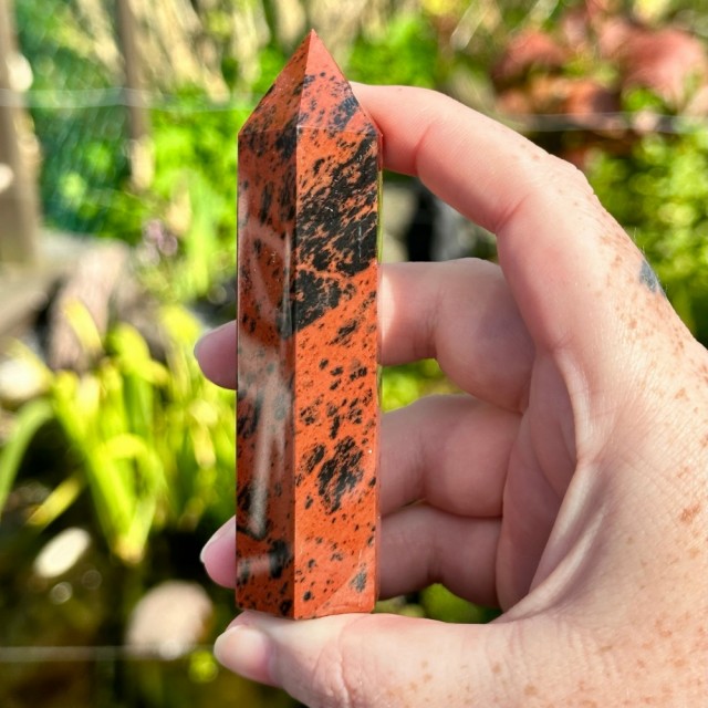 Mahogany Obsidian, også kjent som Rød Obsidian stein eller fjell mahogni, er en form for naturlig Obsidian (vulkansk glass) som tilfeldigvis blir litt rød når det er inneslutninger av jern i den krystallinske formasjonen.