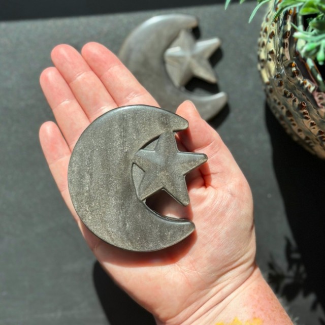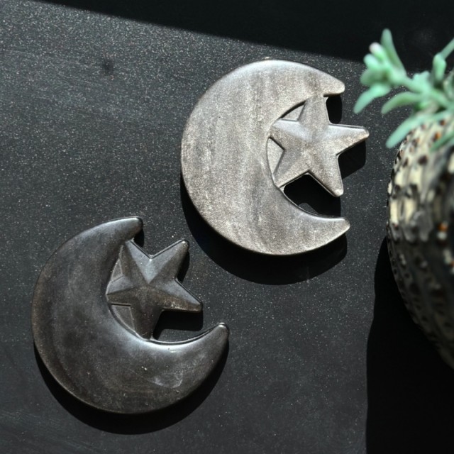Silver Sheen Obsidian skjerper instinktene våre og avslører skjulte talenter. Den minner oss om at vi er herrene over vår egen skjebne og at vi har intelligensen og hjertet som trengs for å gjøre drømmene våre til virkelighet. Silver Sheen Obsidian hjelper oss til å tenke fornuftig og planlegge effektivt. Silver Sheen Obsidian hjelper oss med å tiltrekke oss og utnytte gode muligheter. Det er en utmerket talisman for ledere og bedriftseiere spesielt, men kan hjelpe alle til å lykkes mer i karrieren. Silver Sheen Obsidian minner oss om å ha våre langsiktige mål i forkant av tankene våre og å jobbe aktivt mot dem hver dag.