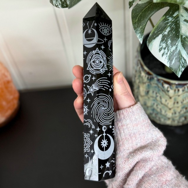 Svart Obsidian er som en energisk skjoldbærer - en intens og rå kraft som beskytter, jorder og forvandler. Den avslører sannheter, løfter sløret mellom det bevisste og ubevisste, og hjelper deg å møte deg selv - uten filter, men med kraft.