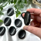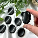 Små Svart Obsidian (vulkansk glass) håndsteiner på ca 31-33g og har målene 4,4x3,4x1,5cm. OBS: Små merker forekommer.