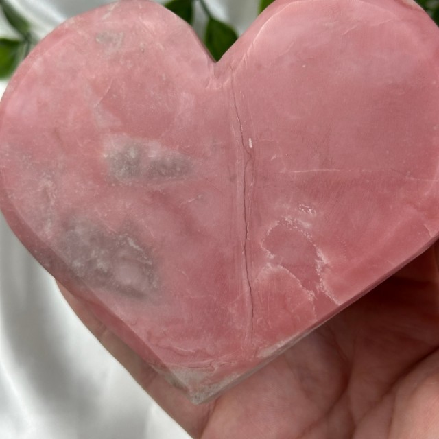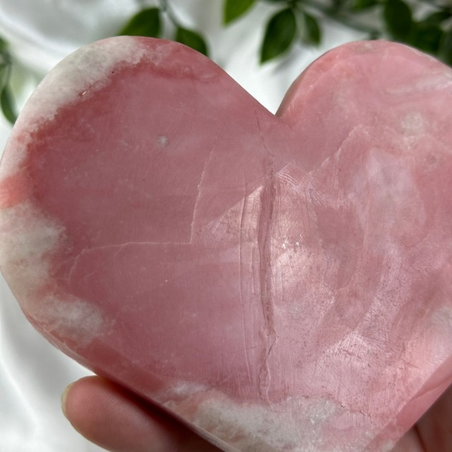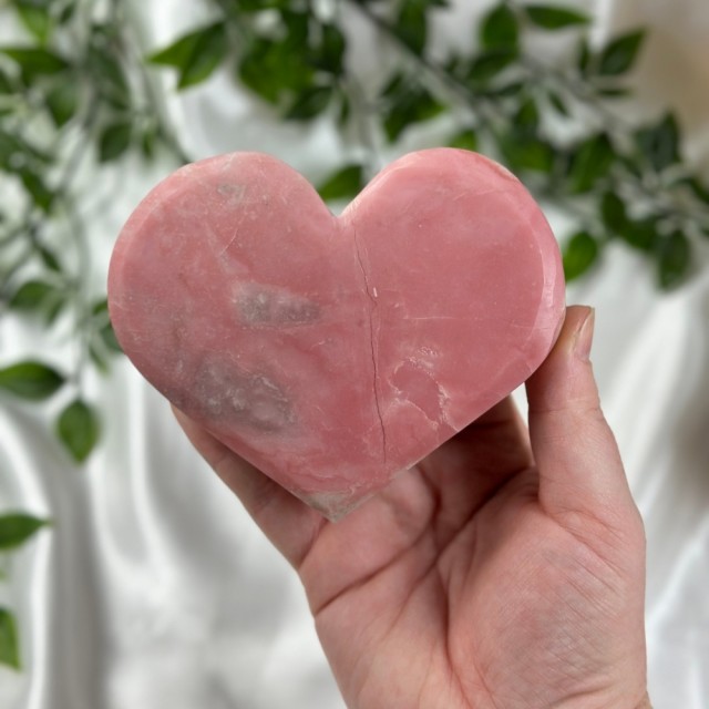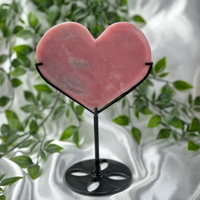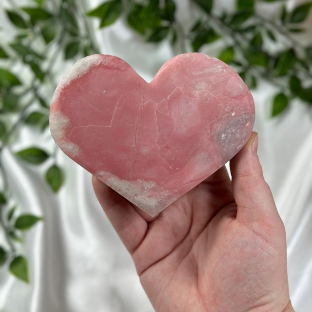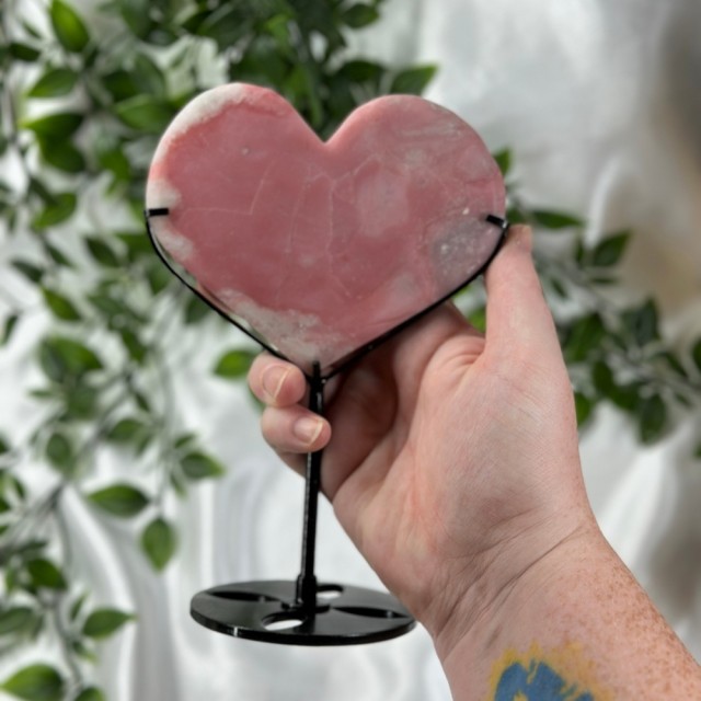 Nydelig stort Rosa Bånd Kalsitt krystallhjerte på 538g og har målene 13,4x11x1,9cm. Krystallholder medfølger ikke, men kan kjøpes separert. Du finner en passende holder inne på Krystaller - Tilbehør. Produktnavn: Krystallholder Til Hjerter (Ekstra Stor).
