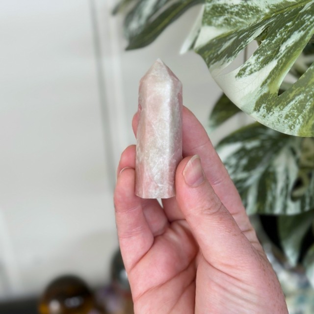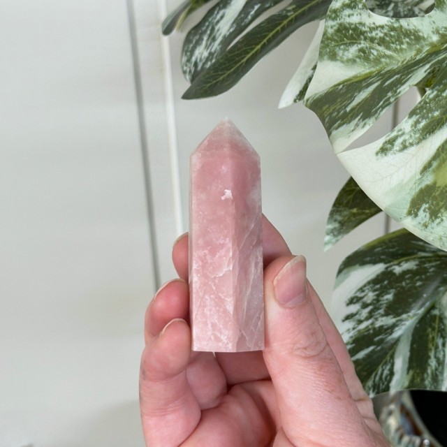 Rosa Opal er en mild og kjærlighetsfull krystall som åpner hjertet, roer sinnet og gir trøst ved sorg, stress og uro. Den fremmer selvkjærlighet, tilgivelse og fred, og bringer håp og glede tilbake i hverdagen. Denne er 19cm lang og 298g. UTEN STATIV!
