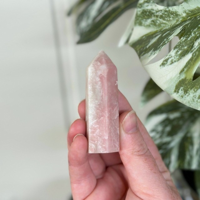 Nydelig Rosa Bånd Kalsitt håndstein. Denne er 6,2cm lang og 1,5cm tykk. veier ca 45,5g. Det er den krystallen du ser på bildene du får hvis du bestiller denne. Små minimale merker kan forekomme.