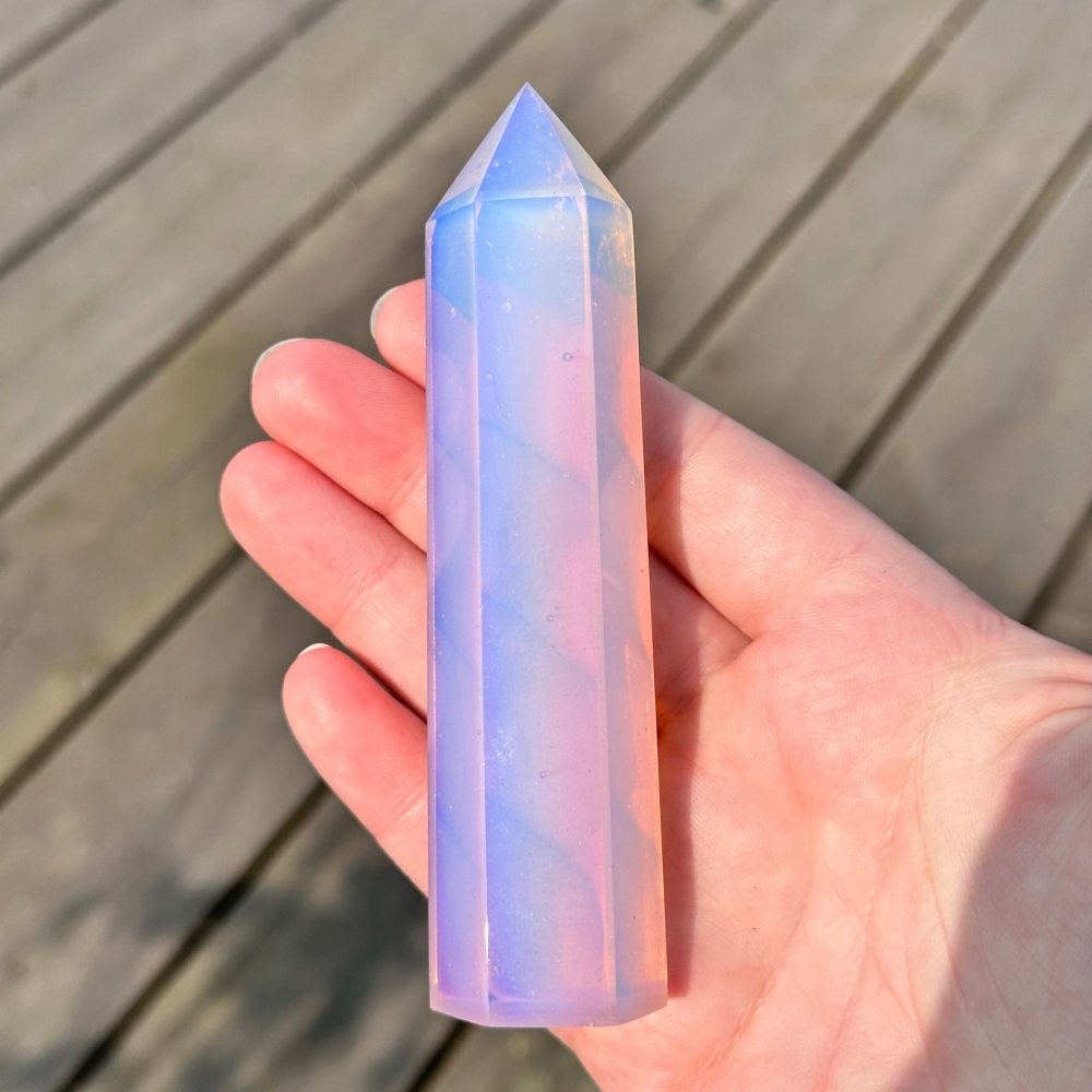 Opalitt er som fanget måneskinn - skimrende, myk og drømmende. En menneskeskapt krystall som sprer ro, klarhet og magi, perfekt for nye begynnelser og indre harmoni.