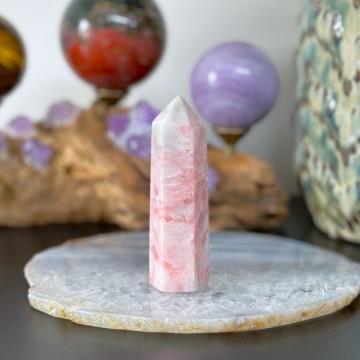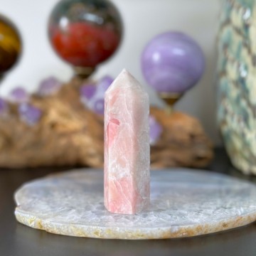 Rosa Opal er en mild og kjærlighetsfull krystall som åpner hjertet, roer sinnet og gir trøst ved sorg, stress og uro. Den fremmer selvkjærlighet, tilgivelse og fred, og bringer håp og glede tilbake i hverdagen. Denne er 19cm lang og 298g. UTEN STATIV!