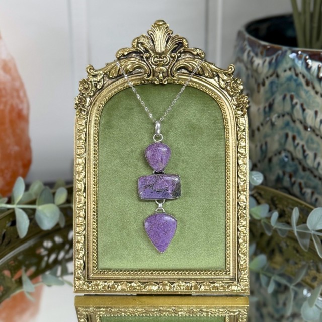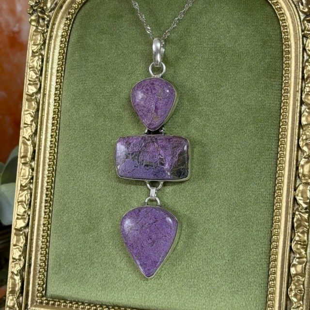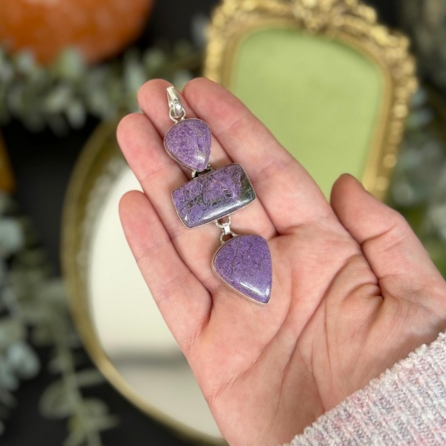 Purpuritt er en kraftfull fiolett stein for selvtillit, indre frihet og klarhet. En dyp og mystisk krystall som støtter deg i å stå trygt i egne valg. Dette anhenget er stemplet 925 sølv (ikke testet). -Kun anheng, smykkelenke medfølger ikke.