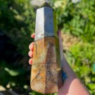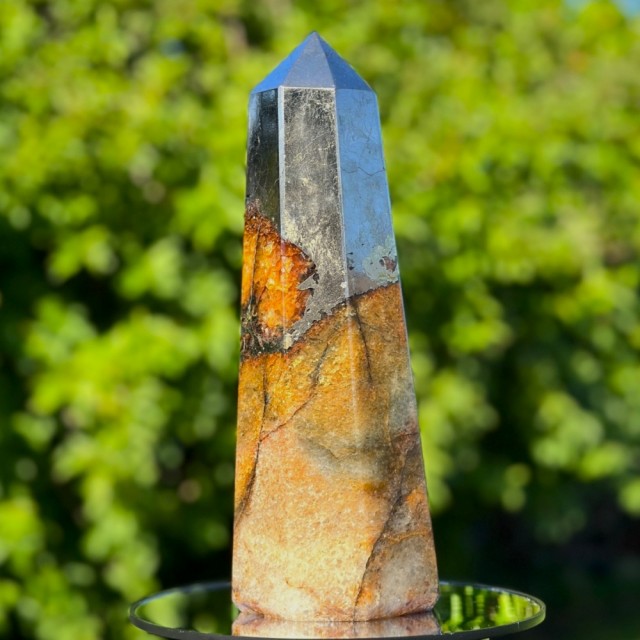 Wow, et fantastisk nydelig tårn av Golden Healer og Pyritt. Dette tårnet veier ca 4,3KG og er ca 28,5cm høyt og 10cm bredt i bunnen. Denne kan snurre rundt mens den står, så du kan finne den perfekte vinkelen som du liker best. Video finner du på IG.