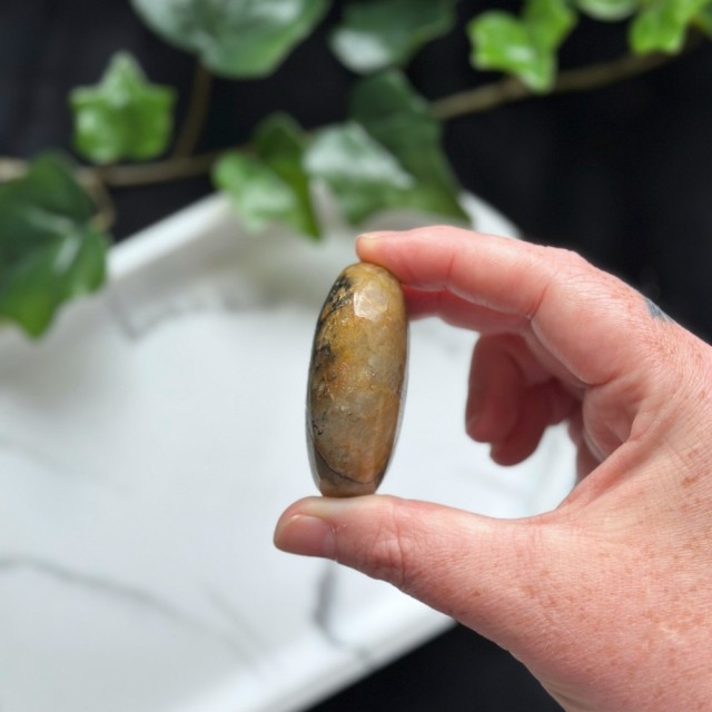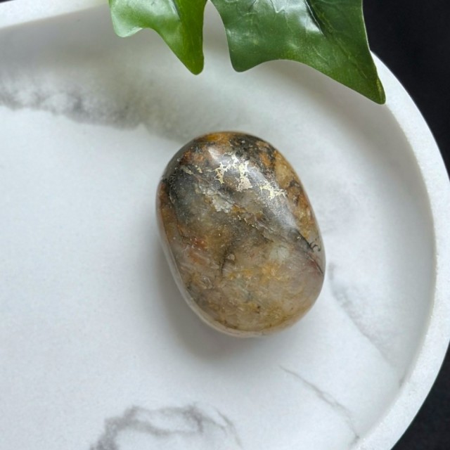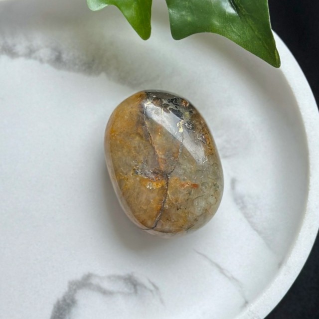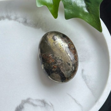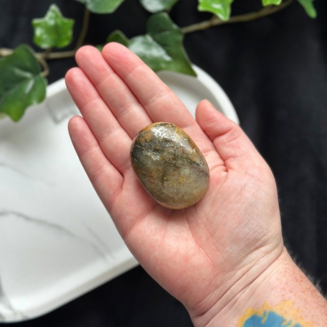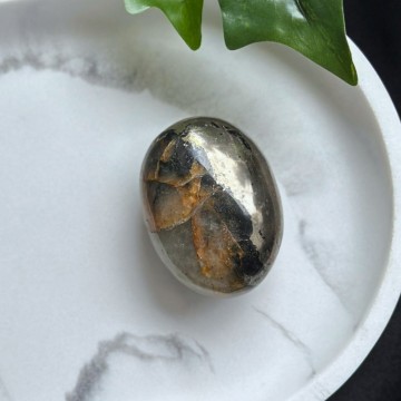 Nydelig håndstein av Golden Healer og Pyritt. Denne som du ser på bildene her veier 80g og er ca 5,4cm. Naturlige små merker kan forekomme.