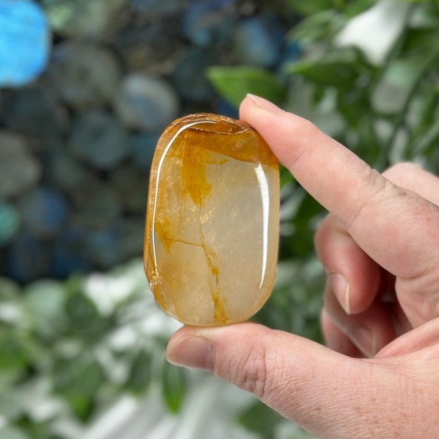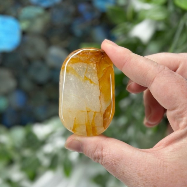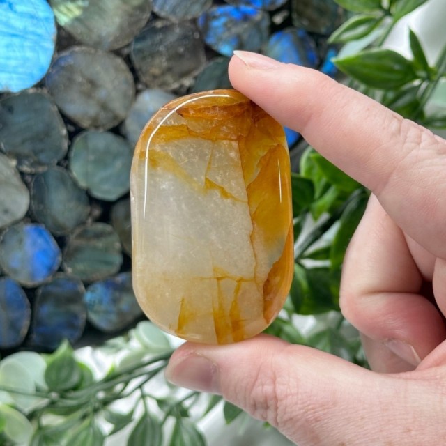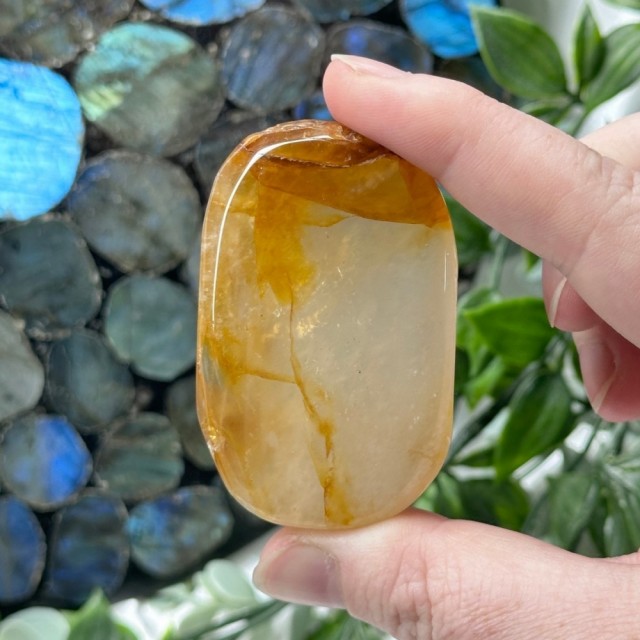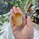 Nydelig unik håndstein av Golden Healer og Pyritt. Denne som du ser på bildene her veier 98g og er ca 5,5cm. Naturlige små merker kan forekomme.