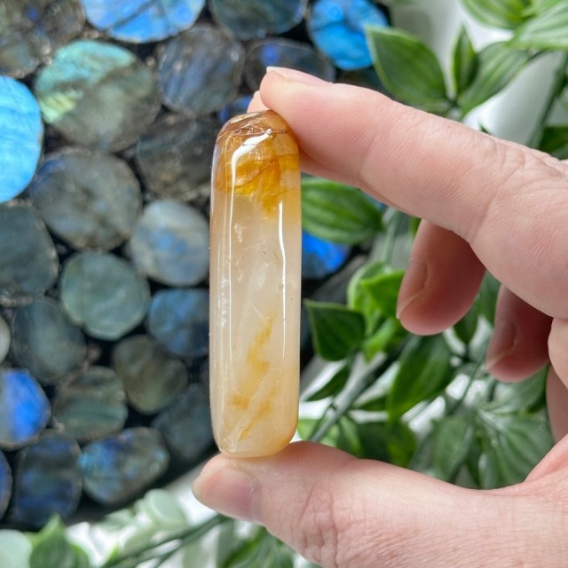 Nydelig håndstein av Golden Healer og Pyritt. Denne som du ser på bildene her veier 80g og er ca 5,4cm. Naturlige små merker kan forekomme.
