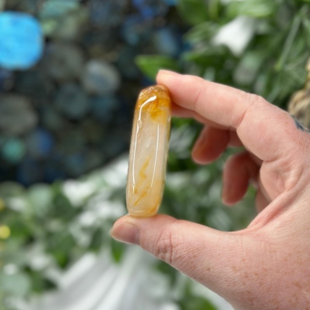 Nydelig unik håndstein av Golden Healer og Pyritt. Denne som du ser på bildene her veier 108g og er ca 5cm. Naturlige små merker kan forekomme.