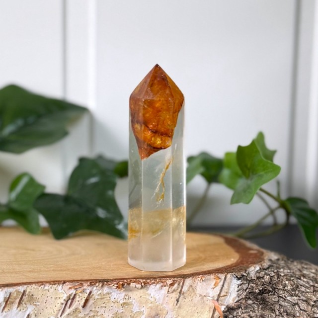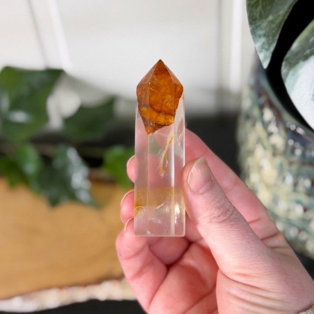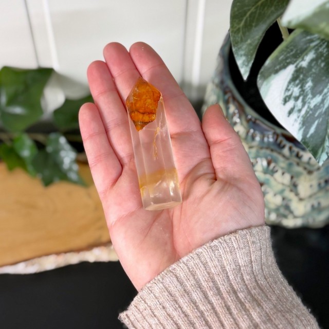 Golden Healer er en type kvarts som inneholder naturlige innslag av jernoksider, vanligvis limonitt eller hematitt, som gir den sine karakteristiske gyldne, oransje eller gule fargetoner. Den dannes dypt i jordens geologiske prosesser, og den varme fargen kommer av oksidasjon av jern i og rundt kvartsen. Hver stein er unik og kan variere fra nesten klar til dypt gyllen, avhengig av jerninnholdet.