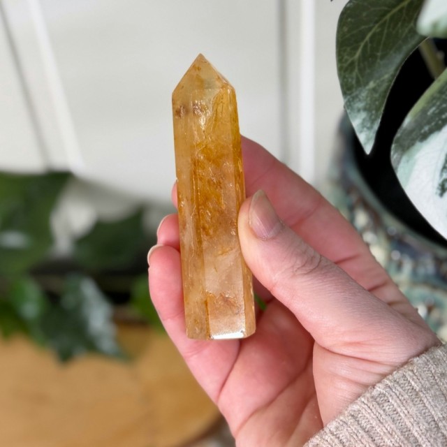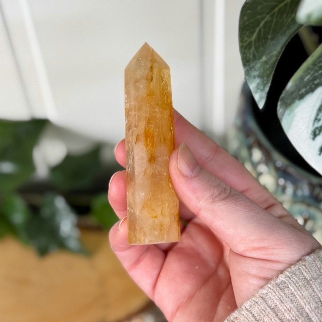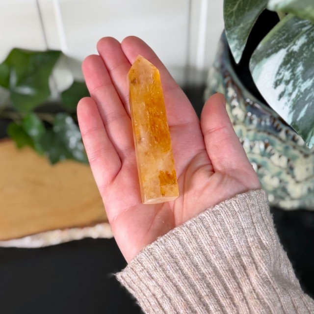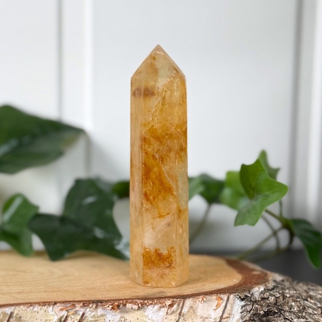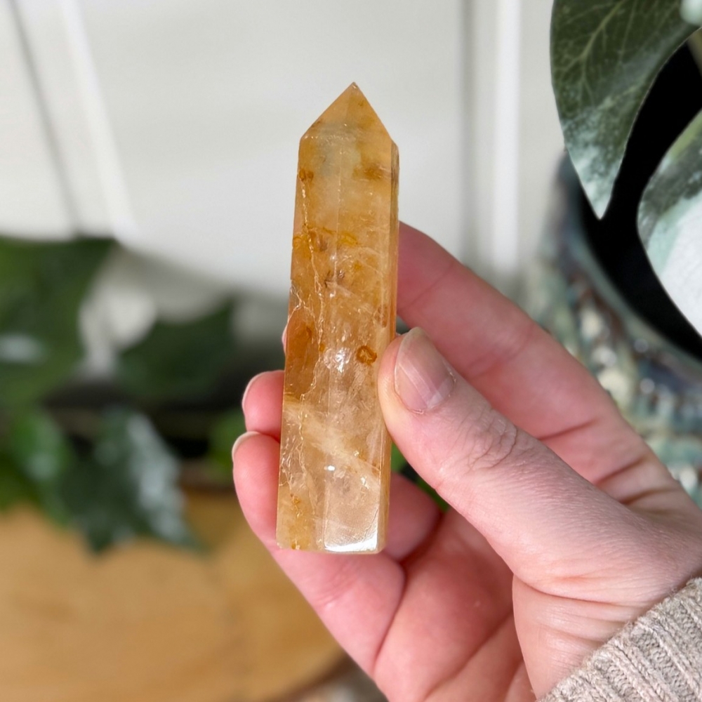 Golden Healer er en type kvarts som inneholder naturlige innslag av jernoksider, vanligvis limonitt eller hematitt, som gir den sine karakteristiske gyldne, oransje eller gule fargetoner. Den dannes dypt i jordens geologiske prosesser, og den varme fargen kommer av oksidasjon av jern i og rundt kvartsen. Hver stein er unik og kan variere fra nesten klar til dypt gyllen, avhengig av jerninnholdet.