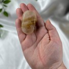Her har du den fantastiske Solsteinen! Dette er en stein vi kaller "En glad stein" eller "Lykkestein". Denne håndsteinen er 6,5cm lang og veier ca 95,2g.