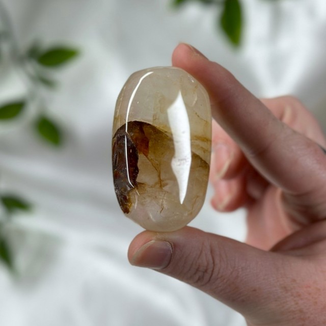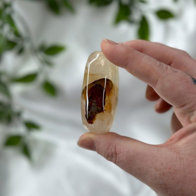 Nydelig håndstein av Golden Healer og Pyritt. Denne som du ser på bildene her veier 80g og er ca 5,4cm. Naturlige små merker kan forekomme.