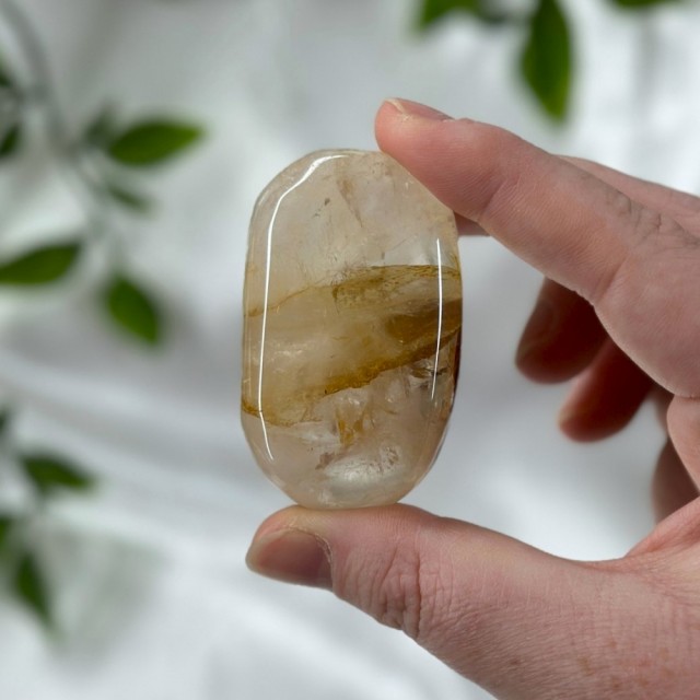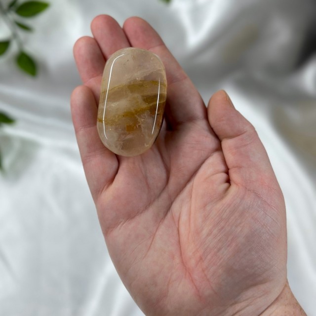 Nydelig unik håndstein av Golden Healer og Pyritt. Denne som du ser på bildene her veier 98g og er ca 5,5cm. Naturlige små merker kan forekomme.