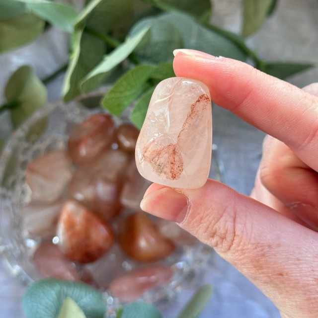 Flammekvarts, også kjent som Fire Quartz eller Hematoid Quartz, er en kraftfull variant av klar kvarts med innslag av jernoksid som gir det karakteristiske flammeaktige mønsteret i rødt, rosa og oransje. Den kalles gjerne en “universell krystall” og sies å være anvendelig i alt fra healing til beskyttelse, manifestasjon og meditasjon.