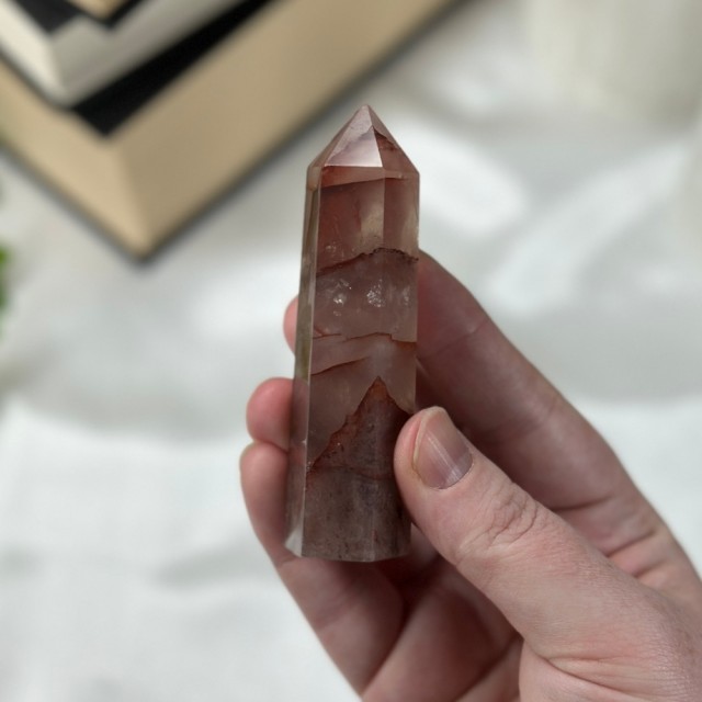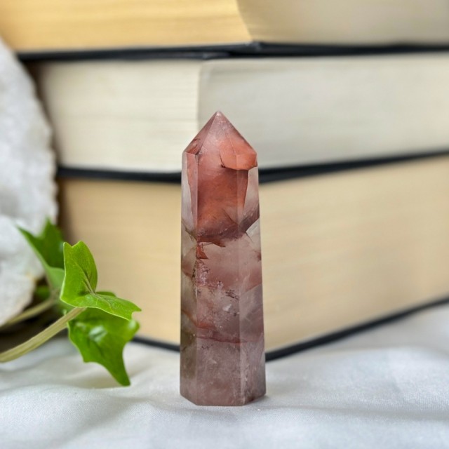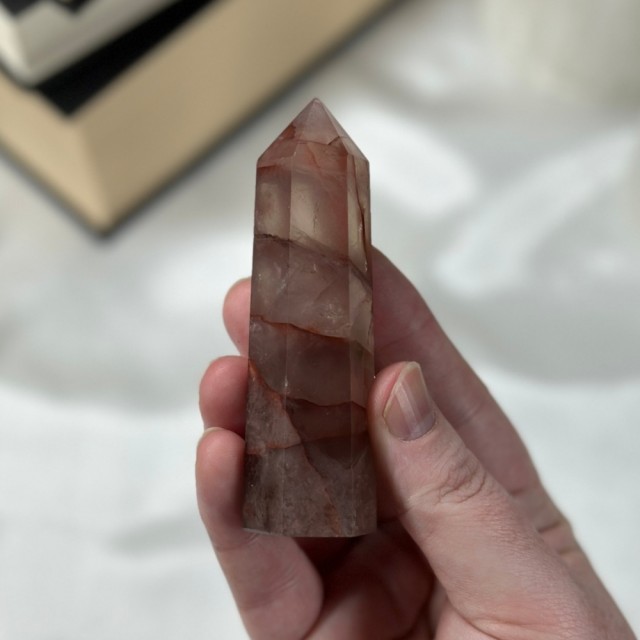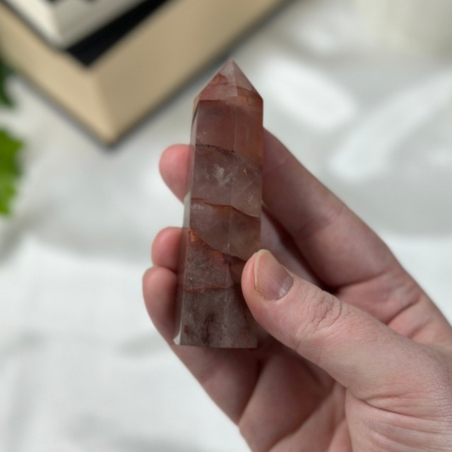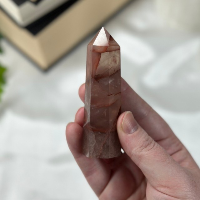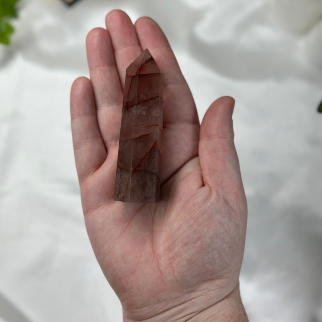 Ice Rosenkvarts tårn. Dette er 10cm høyt og veier ca 96g. Det er den krystallen du ser på bildene du får hvis du bestiller denne. Mye flott gjenskinn inni dette tårnet.