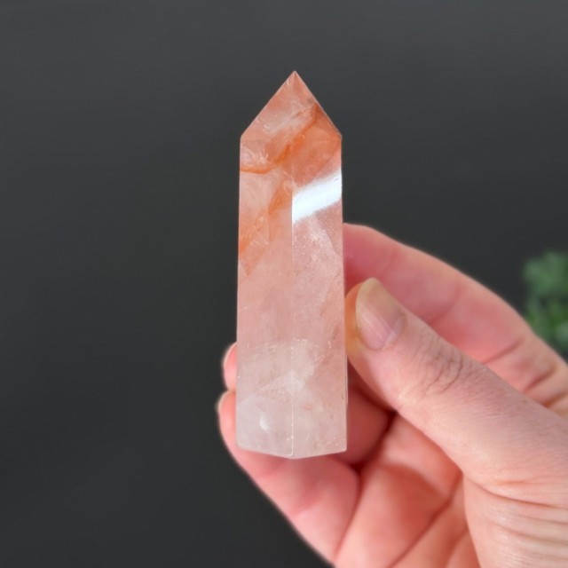 Et kraftfullt og levende hjerte fylt med ildens energi. Dette Flammekvarts tårnet gløder med naturlige flammer av rød og gyllen varme som gir deg en gnist av styrke, lidenskap og indre driv. Dette tårnet er ca 8,5cm og veier 90g.