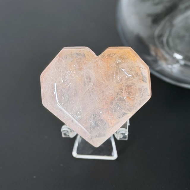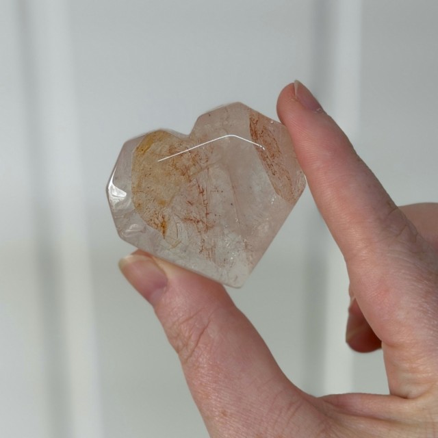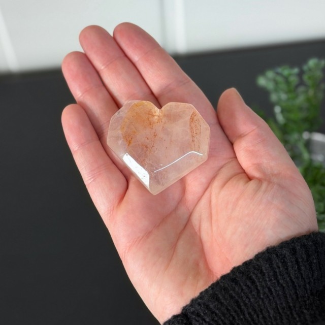 Flammekvarts, også kjent som Hematitt Kvarts eller Fire Quartz, er en kombinasjon av klar kvarts og jernoksid. Det er nettopp jernet som skaper de flammende innslagene i rødt, oransje og rosa nyanser, og gir krystallen sitt levende uttrykk.