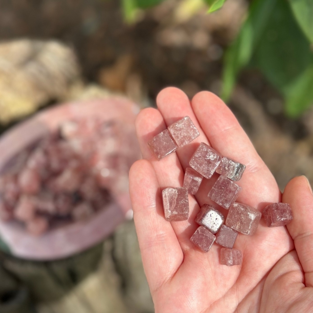 Kunzitt tromlet stein. Disse er ca 1-3cm og veier 10-20g stk. Prisen er per stk og det er tilfeldig plukket. **Redusert pris pga små merker/hakk forekommer!