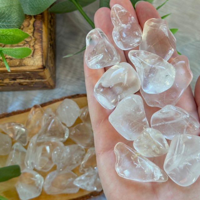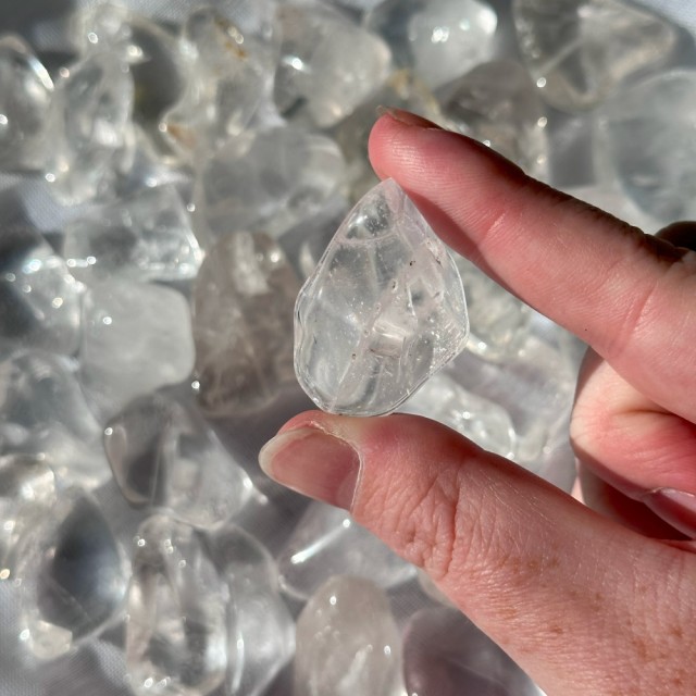 Nydelig Bergkrystall tromlet mini/små. Disse er ca 0,5-1,5cm. Prisen er per stk, tilfeldig plukket. Små merker kan forekomme.