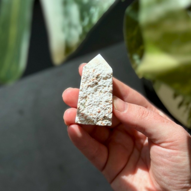 Rosa Opal er en mild og kjærlighetsfull krystall som åpner hjertet, roer sinnet og gir trøst ved sorg, stress og uro. Den fremmer selvkjærlighet, tilgivelse og fred, og bringer håp og glede tilbake i hverdagen. Denne er 19cm lang og 298g. UTEN STATIV!