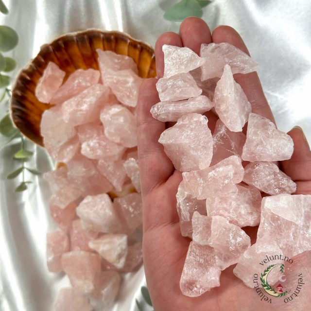 Rosenkvarts Råbiter, i denne posen får du med deg 4 mini råbiter av Rosenkvarts. Prisen er per pose med 4stk.
